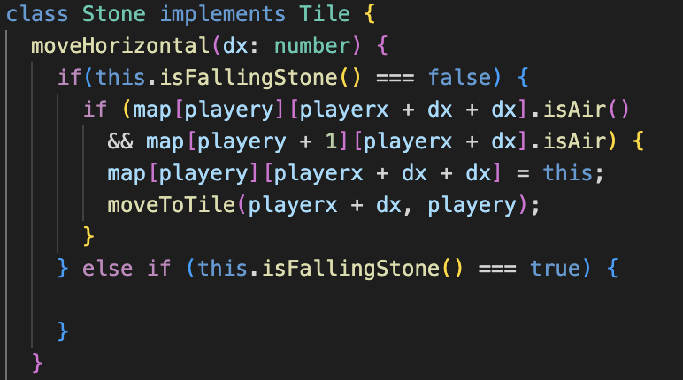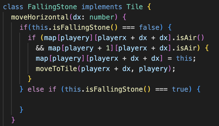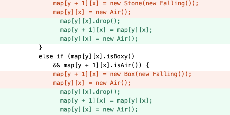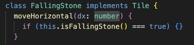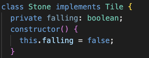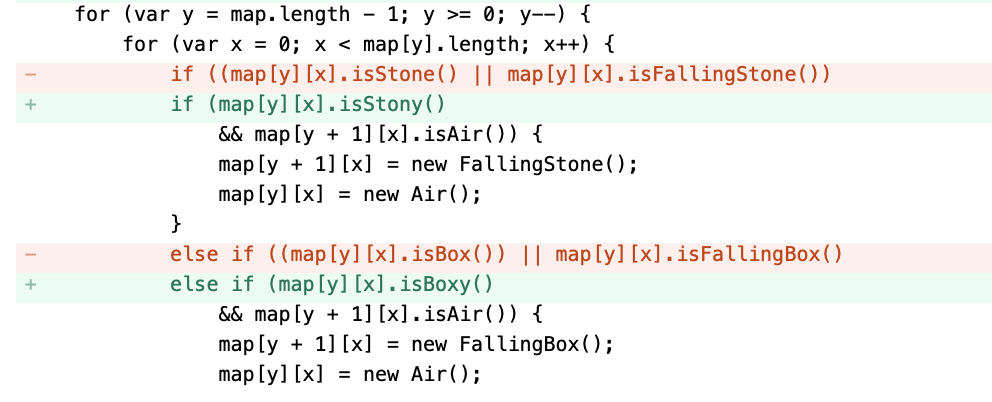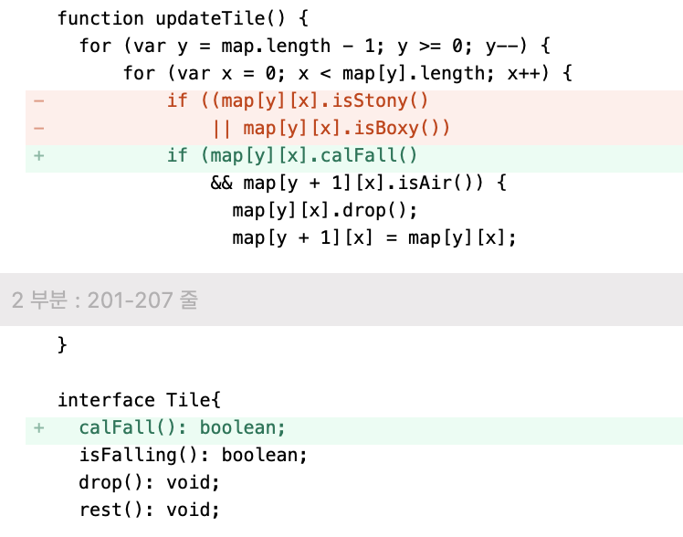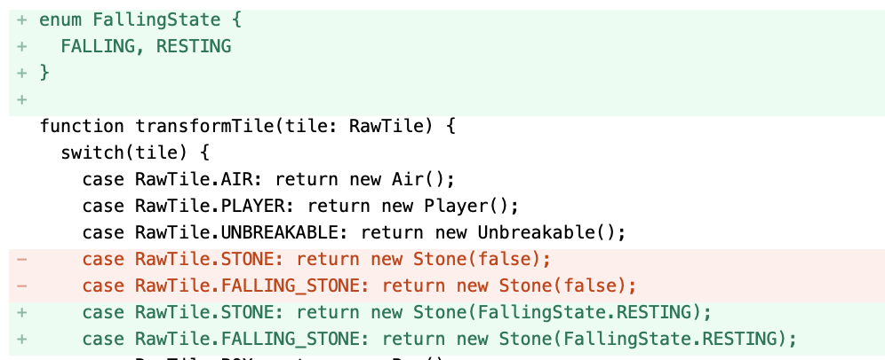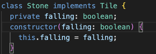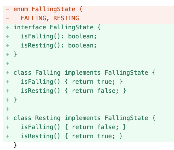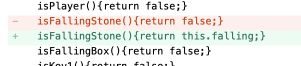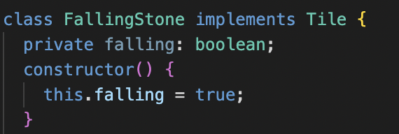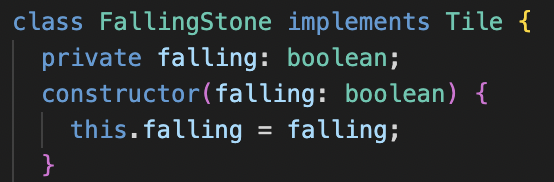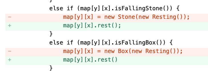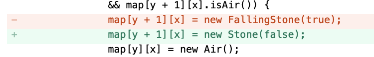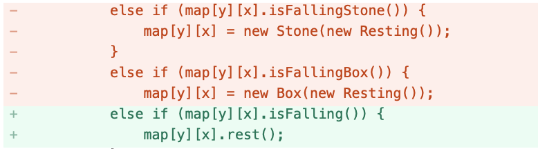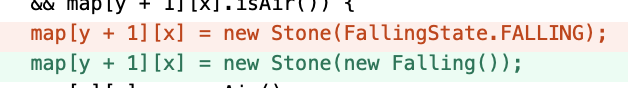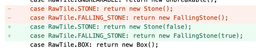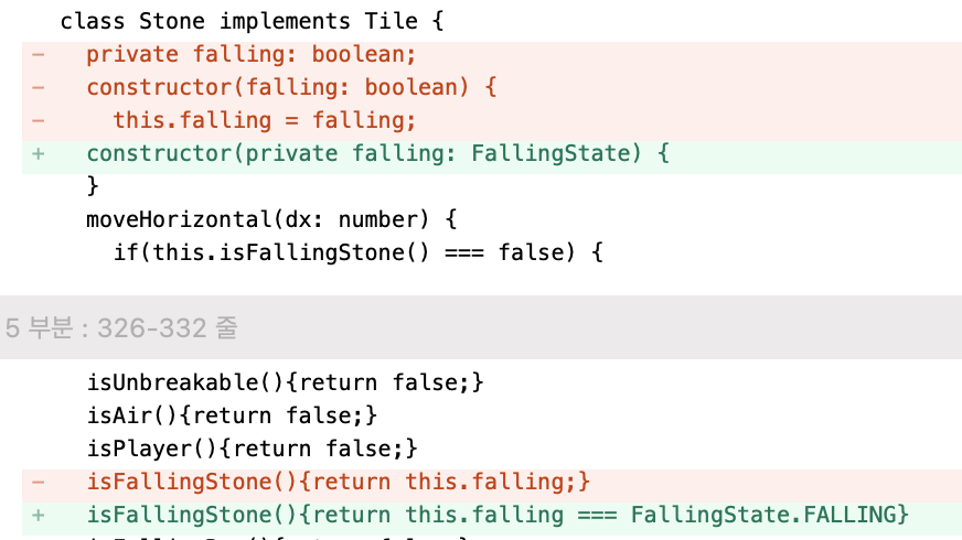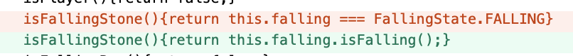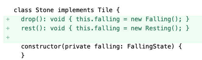 2. 상수 메서드 isFallingStone만 다르므로 두번째 단계는 falling 필드를 새로 도입하고 생성자에서 그 값을 할당하는 것으로 시작