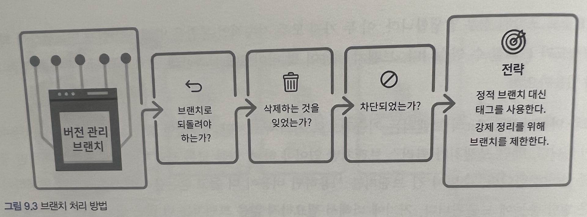 - 프로젝트가 코드베이스 외부에 영향을 미치지 않으면 별도 브랜치에 보관 후 태그를 지정하고 6주 후 태그 삭제한다고 메모를 작성한다.