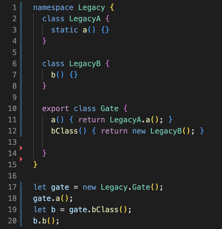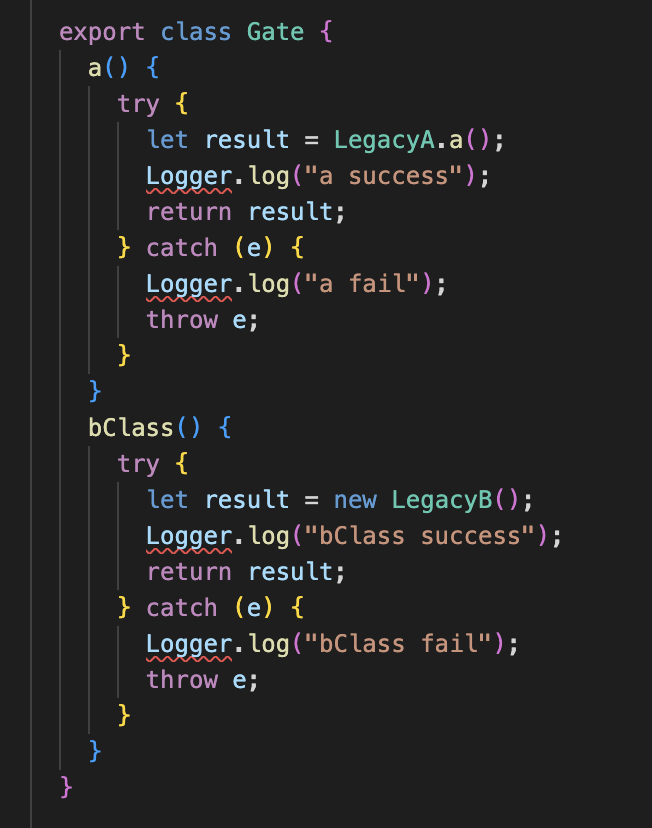 이 시점에서 레거시 코드가 모두 Gate 클래스의 함수이기 때문에 얼마나 많은 접점이 있는지 알 수 있다.