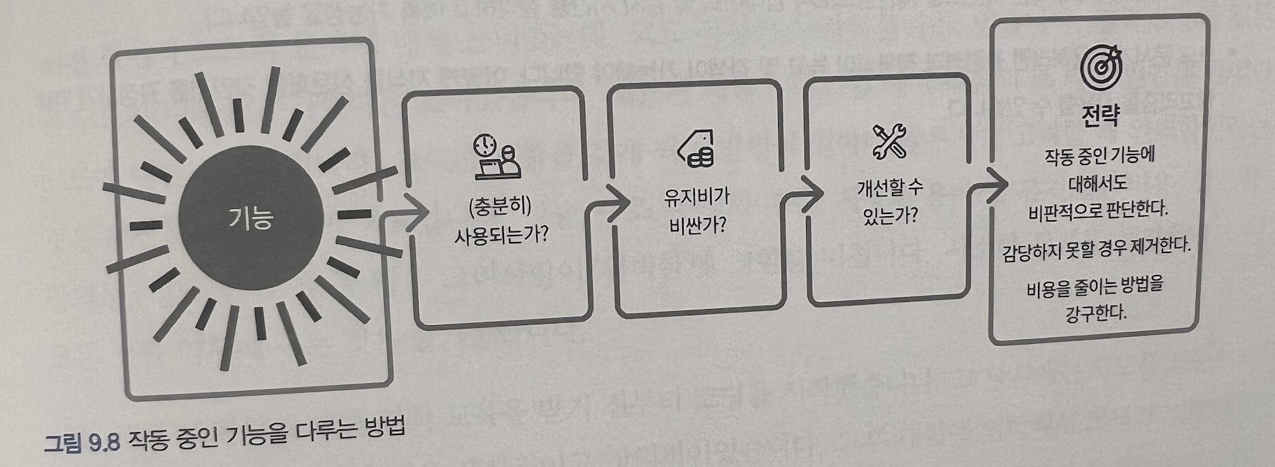 - 기능상 이점이 너무 복잡하면 리팩터링 하거나 코드를 제거해서 비용을 줄이는 방법을 찾는 것이 좋은 경우도 있다.